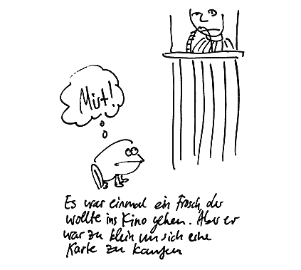 Once there was a frog that wanted to see a movie, but he was too small to buy a ticket.