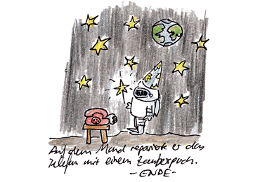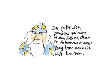 But a job is a job. He took his magic wand and got into the astronaut’s suit.